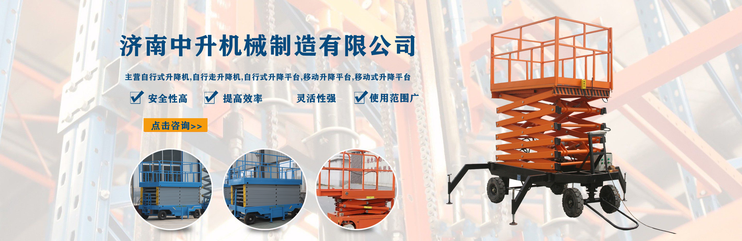 濟(jì)南中升機(jī)械制造有限公司主營(yíng)自行式升降機(jī),自行走升降機(jī),自行式升降平臺(tái),移動(dòng)升降平臺(tái),移動(dòng)式升降平臺(tái)等產(chǎn)品,產(chǎn)品廣泛用于廠房維護(hù)、工業(yè)安裝、設(shè)備檢修、物業(yè)管理、倉(cāng)庫(kù)、航空、機(jī)場(chǎng)、港口、車站、加油站、體育場(chǎng)、展覽館等多種行業(yè)和場(chǎng)所, 公司設(shè)備精良、工藝合理、檢測(cè)手段齊全,技術(shù)力量充足,公司創(chuàng)立伊始即本著“專注、專心”的經(jīng)營(yíng)理念,依托技術(shù)團(tuán)隊(duì)優(yōu)勢(shì)和設(shè)備硬件保障,全力打造良心的升降平臺(tái)企業(yè)。 我公司始終以“品質(zhì)為本,服務(wù)至上”作為企業(yè)宗旨。只要你訂購(gòu)了我公司的產(chǎn)品,無(wú)論你身處何方,我們都會(huì)及時(shí)派出技術(shù)人員為你服務(wù)!...